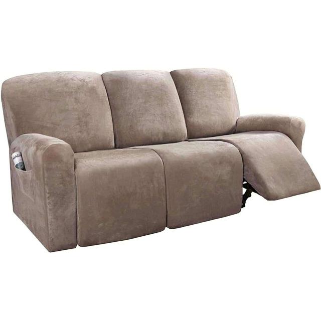 ストレッチ ベルベット リクライニングソファーカバー 3人掛け, 8-分割タイプ 付 サイドポケッ 電動 リクライニングチェア ソファーカバ