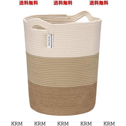 Sea Team 大きいサイズ 収納バスケット 収納かご 洗濯かご ランドリーバスケット ロープバスケット コットンロープバスケット 持ち手付き