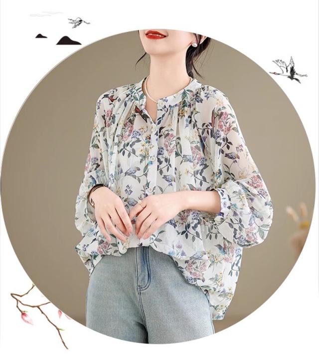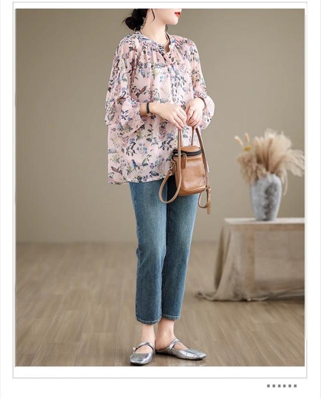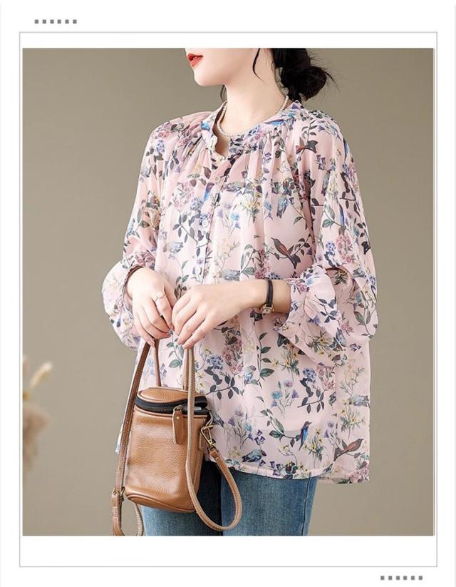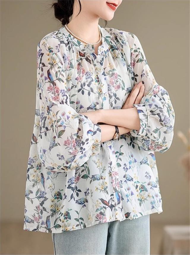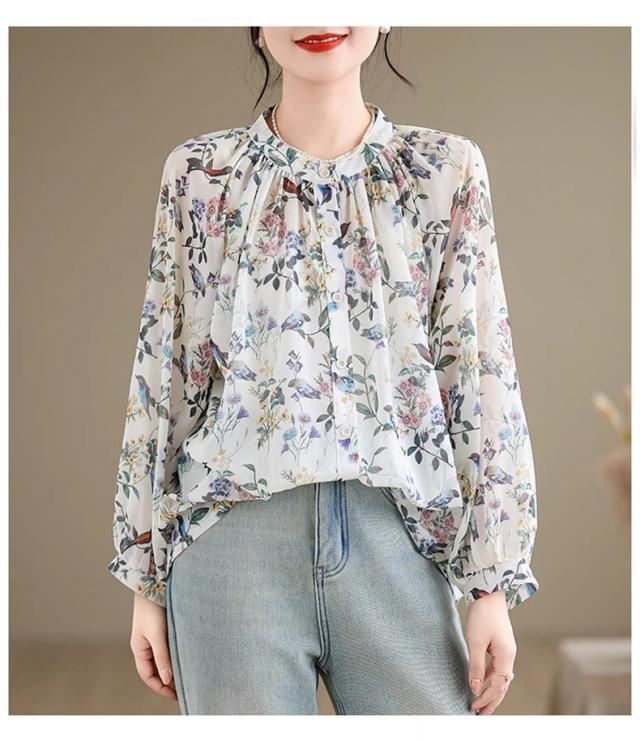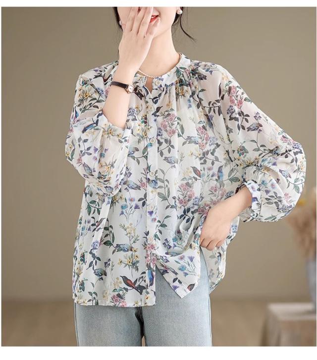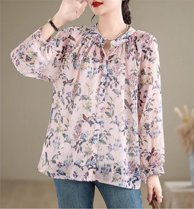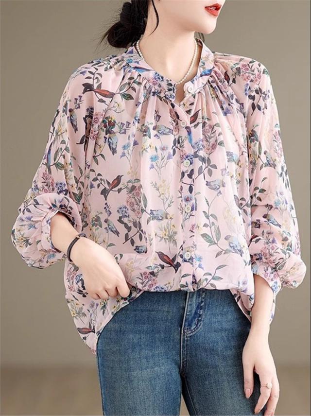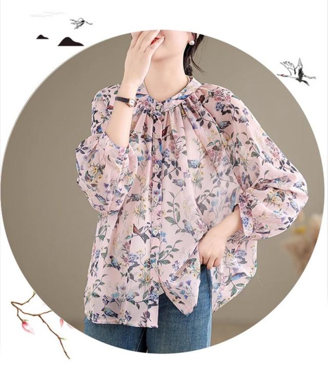 ブラウス レディース トップス 春シャツ 長袖 花柄 アンティークブラウス ゆったりシルエットで旬なスタイル この春1番おすすめのトップス 絶妙な丈感