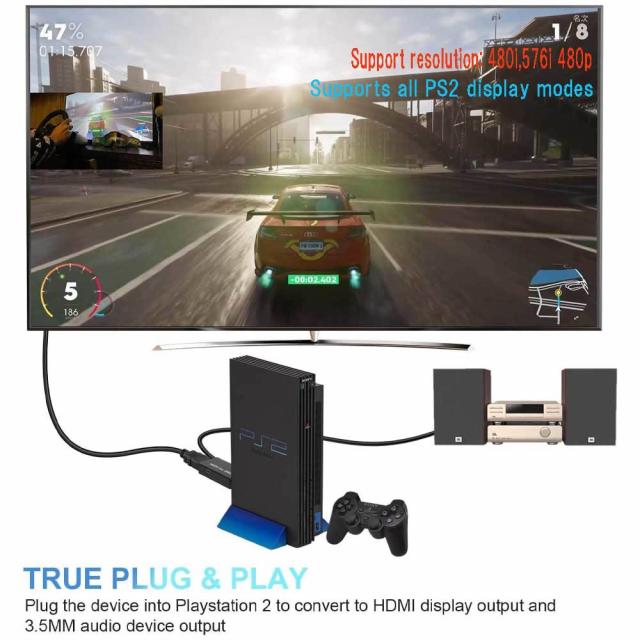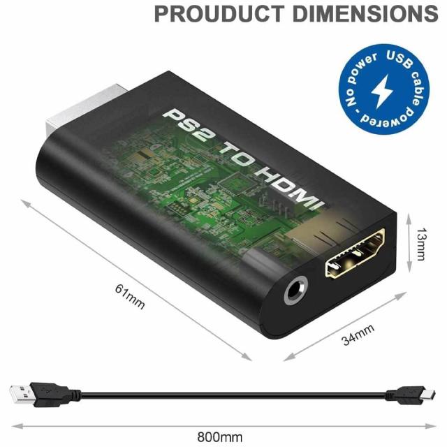 PS2 to HDMI 変換アダプター PS2専用HDMI接続コネクターHDMI出力コンバーター 携帯便利CONNECTOR PS2復活 給電USBケーブル ハイスピード