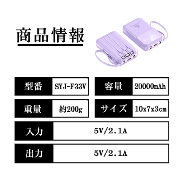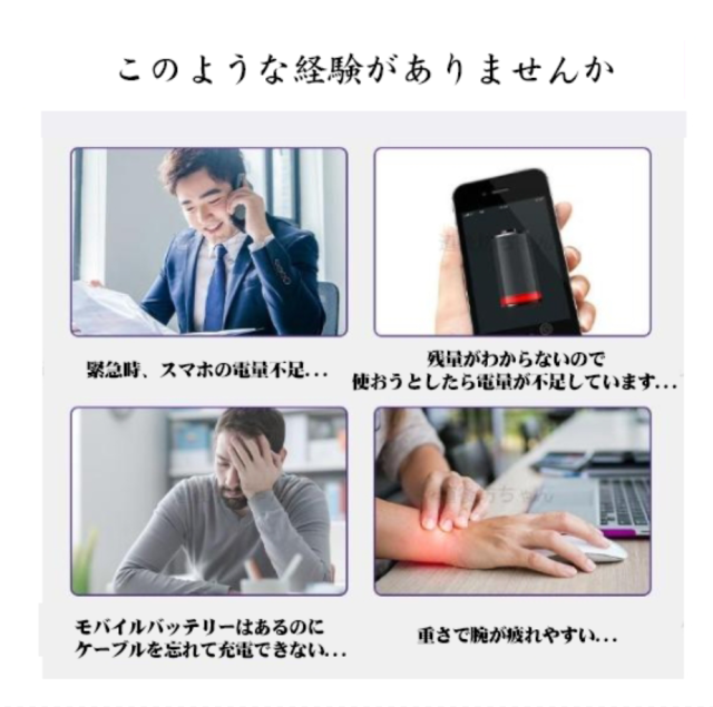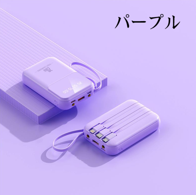 【4本ケーブル内蔵・4台同時充電可能】出力にはmicroUSB、USB とtype-Cなど3規格出力ケーブルが内蔵された 最新型のケーブル内蔵 モバイルバッテリーです。専用ケーブルを持ち歩く必要がなく、各種タイプのデバイスにも対応出来ます。ケーブルを忘れたときも充電ができないなんて心配はいりません。合わせて最大4台の機器を同時に充電することができ、パワーのある究極の携帯充電器。更に、モバイルバッテリーの本体に充電ケーブルが内蔵されているため、コンセントのある場所であれば即時充電が可能。