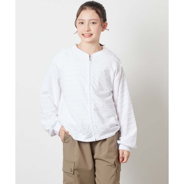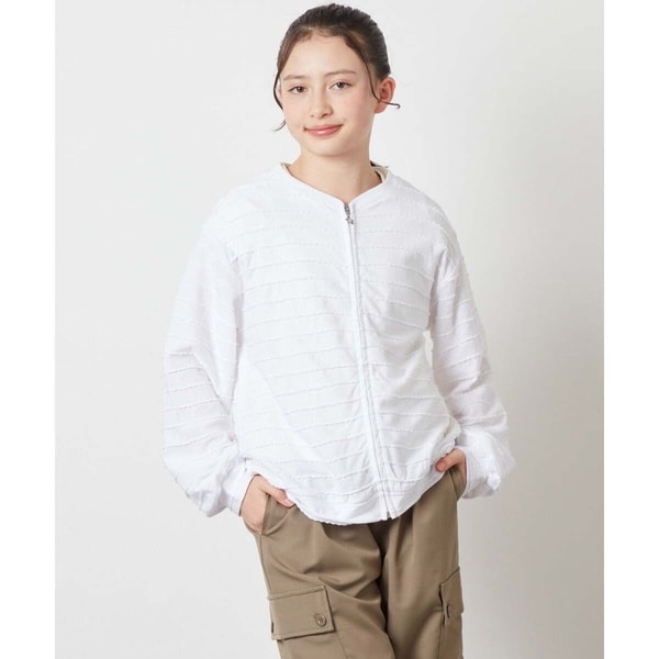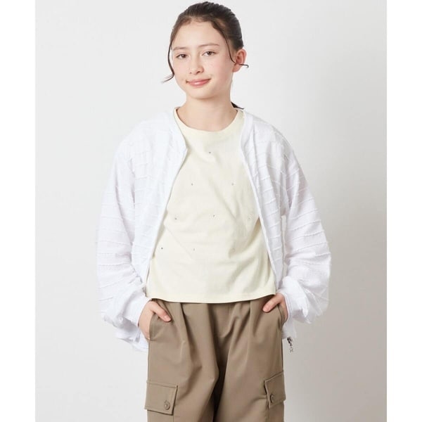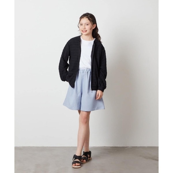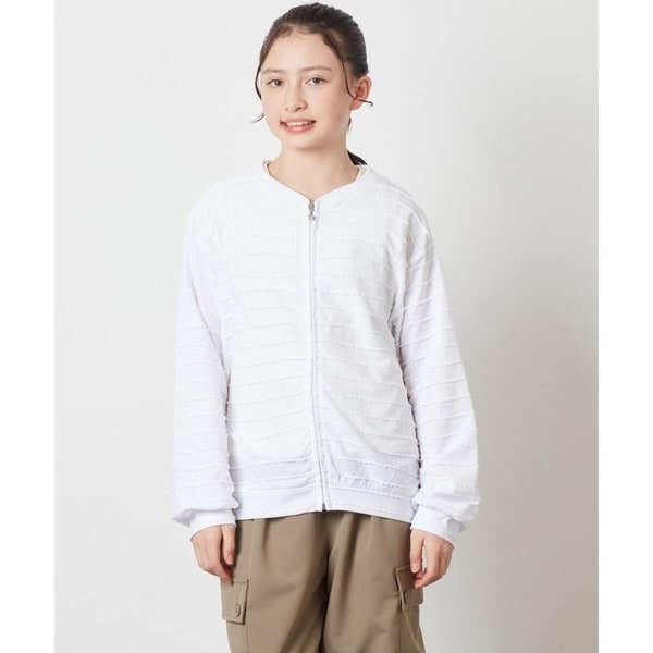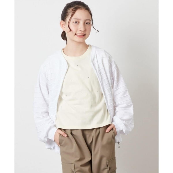 ・表面の凹凸と程よい透け感が涼しげな通気性の良いカットソー素材を使用したカジュアルなカーデ。