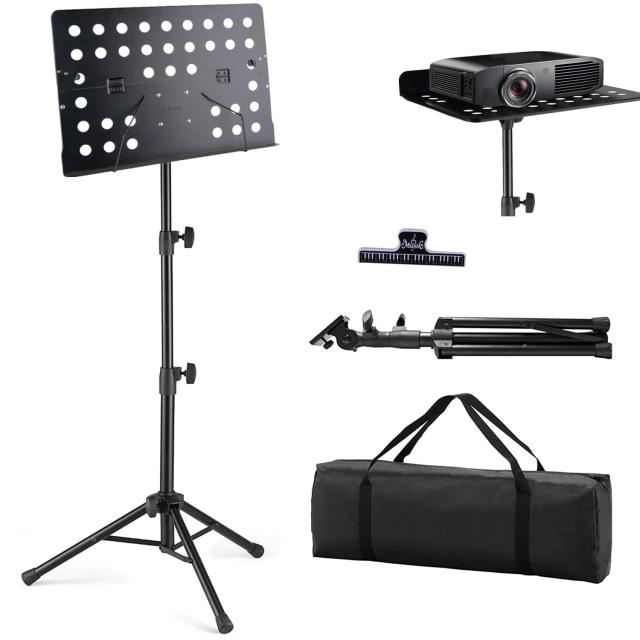 ?【頑丈な三脚設計】 頑丈なスチール構造、マットブラック仕上げです。 譜面台部分とスタンド部分の取り外しが可能、使わない時は折りたたんでコンパクトに収納できます。 高品質のゴム足と丈夫なベースで開閉には大変便利。自由な角度も調整できます。三脚折畳式で、脚部を大きく広げ、しっかりとした作りで安定感抜群、穴あきタイプで軽量で、譜面も折りたたみできます。