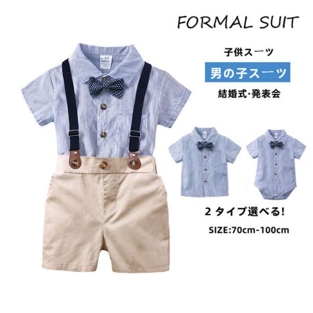 商品名:ベビースーツ 子供スーツ 男の子 フォーマルスーツ 半袖 キッズスーツ イギリス風 シャツ パンツ ズボンストライプ柄 ベビー服 男児 2点セット 子供服 発表会 入学式 卒業式 結婚式 出産祝い お祝日 七五三 お宮参り 百日祝い 誕生日 春秋70cm 80cm 90cm 100cm送料無料