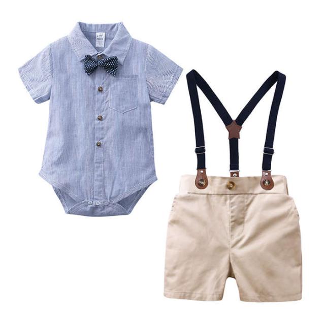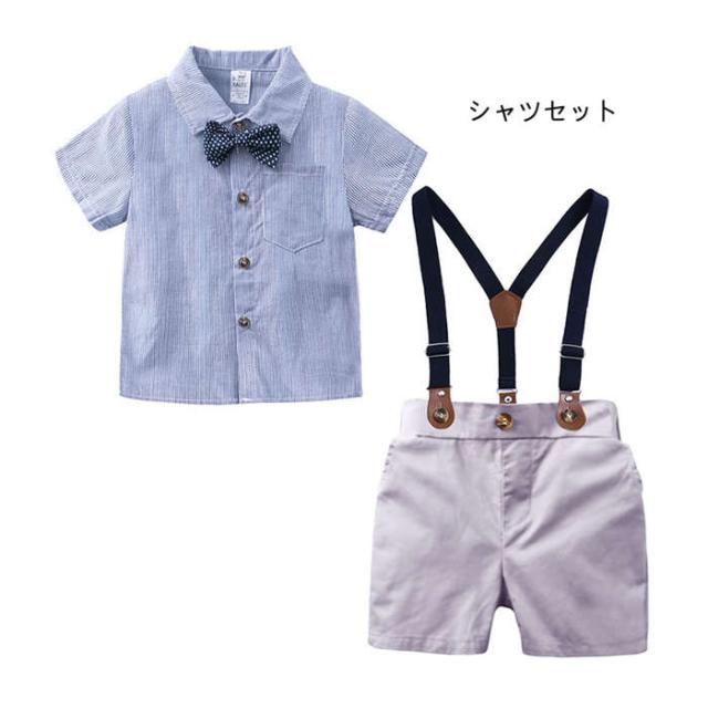 ベビースーツ 子供スーツ 男の子 フォーマルスーツ 半袖 キッズスーツ イギリス風 シャツ パンツ ズボンストライプ柄