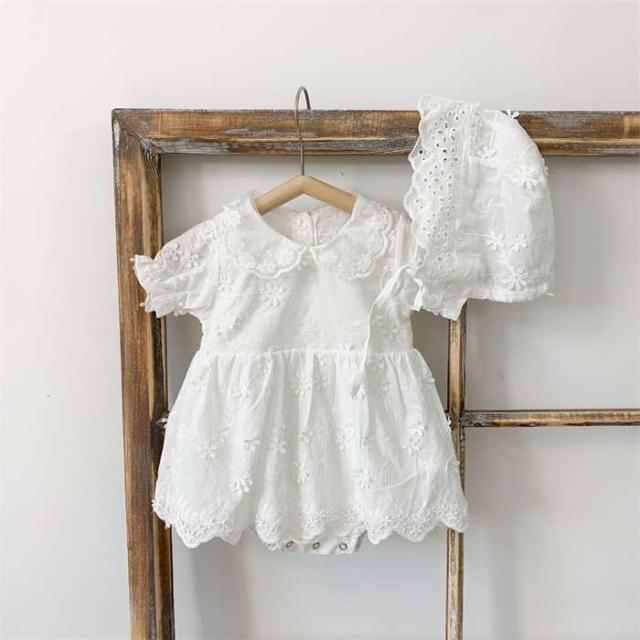 ベビー服 カバーオール 女の子 ロンパース セットアップ帽子付き プリンセス フォーマルワンピース セレモニードレス 半袖