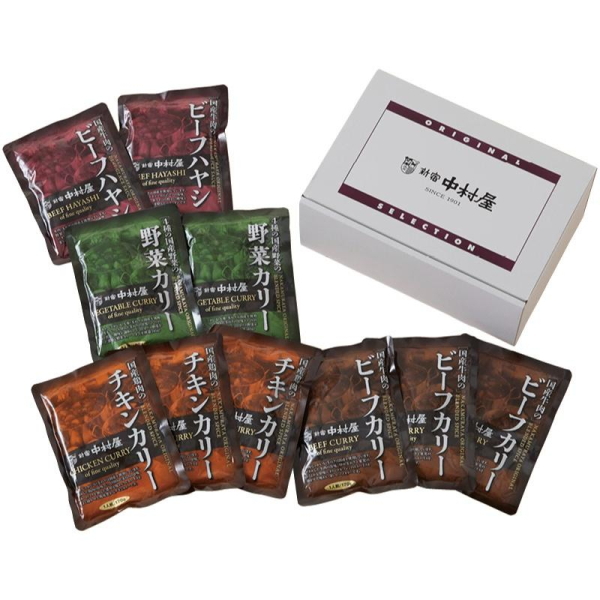 新宿中村屋 国産カリーセット 10食 N-KC005 化粧箱入、国産、牛肉、ビーフカリー、鶏肉、チキンカリー、野菜カリー、贅沢、気軽、本格派、国産素材、コク、うま味、スパイス、ご飯、レトルト、常温