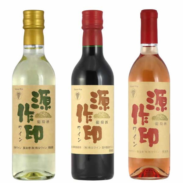 ◆秩父 源作印ワイン 1本 720ml 送料無料 地酒、赤、白、ロゼ、秩父市、フルボトル、化粧箱、アルコール、爽やか、優しい口当たり、やや辛口、酸味、渋み、キレ味、辛口
