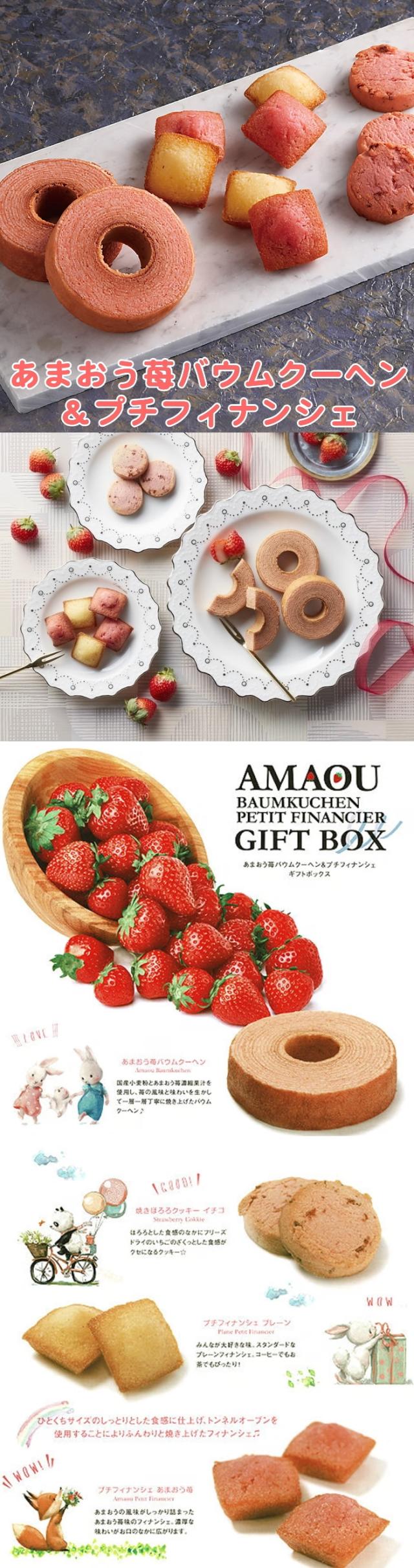 商品:あまおう苺バウムクーヘン×2、プチフィナンシェ4個入(プレーン)×1、焼きほろろクッキー(イチゴ)×2【化粧箱入】