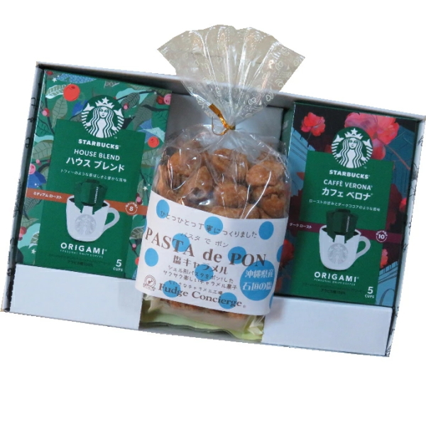 【パスタでポン黒蜜きなこの商品詳細】 ●黒蜜きなこ 内容量130g ●賞味期限:90日 【パスタでポン塩キャラメルの商品詳細】 ●塩キャラメル 内容量130g ●賞味期限:90日 ●【注意事項】 ・直射日光及び高温多湿の場所を避けて保存してください。 スターバックス オリガミ ドリップコーヒー(9g×5袋×2)(ハウスブレンド・カフェベロナ各1)賞味期限:270日 ●箱サイズ/29×21×6cm 内祝い お祝い返し ウエディング 引き出物 結婚引出物 結婚内祝い 出産内祝い 入学内祝い 卒業内祝い 就職内祝い 新築内祝い 引越し内祝い 快気内祝い 開店内祝い 披露宴 お祝い 御祝 成人式 就職祝い 昇進祝い 新築祝い 開店祝い 退職祝い 快気祝い 全快祝い 金婚式 結婚記念日 ご挨拶 御挨拶 お見舞御礼 お餞別 記念日 誕生日 父の日 母の日 記念品 ゴルフコンペ コンペ景品 ビンゴ 景品 賞品 粗品 香典返し 志 粗供養 供物 お供え 手提げ袋無料 香典返し挨拶状無料 葬儀挨拶状無料