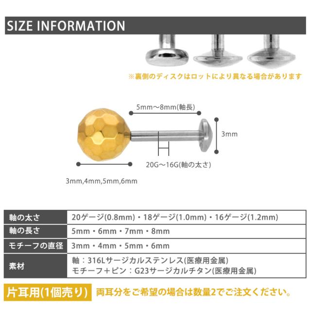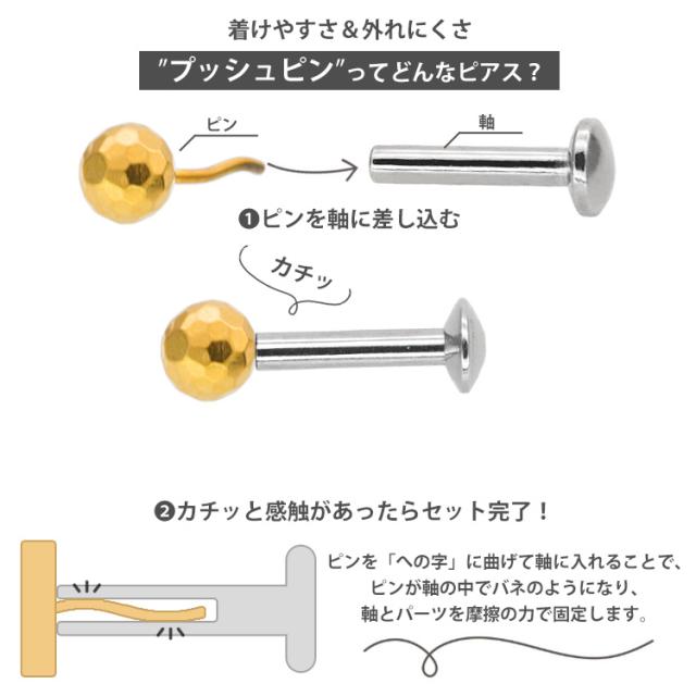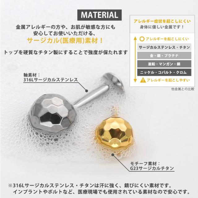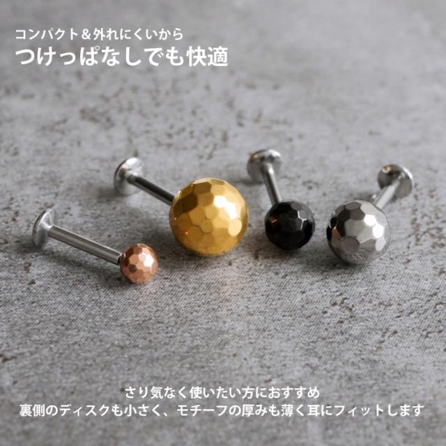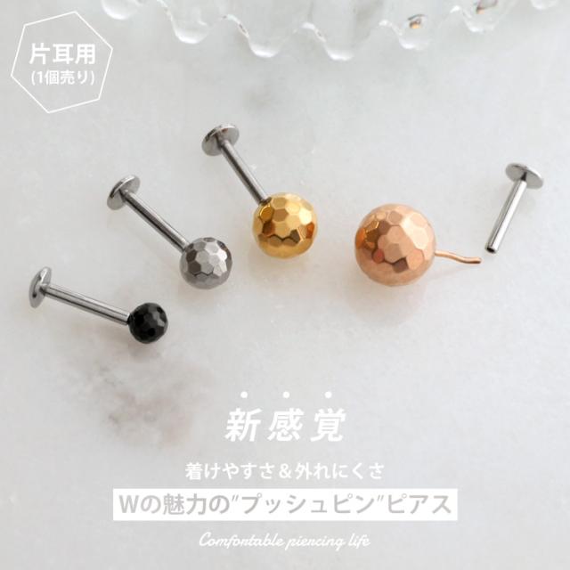 【ネジ不要/摩擦でロック】つけっぱなしピアス ボディピアス 20G 18G 16G 槌目ミラーボールプッシュピンラブレット トラガス 軟骨ピアス 【片耳用】 【30日間お試し期間あり/返品交換保証】