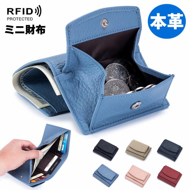 ミニ財布 レディース 3つ折り RFIDスキミング防止 本革 コンパクト 薄い財布 二つ折り財布 メンズ 小さい財布 ミニウォレット 超軽量 可愛い 小銭入れ付き 男女兼用
