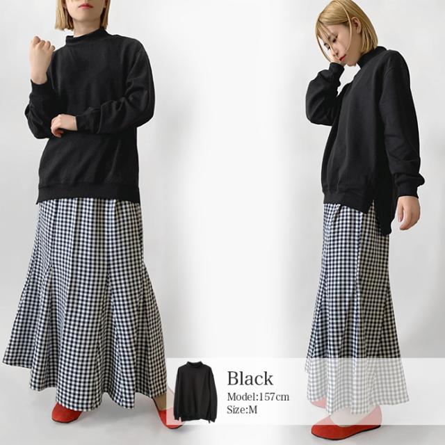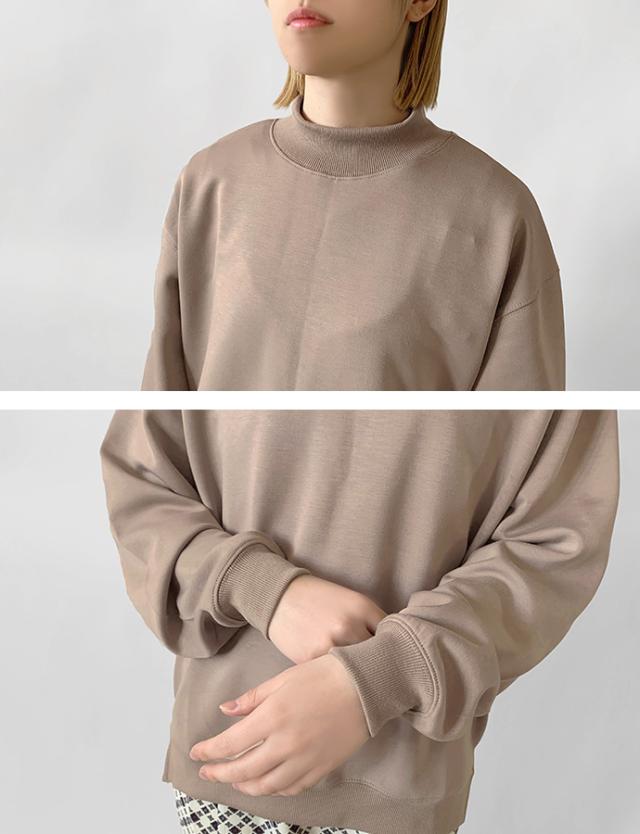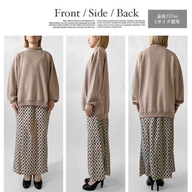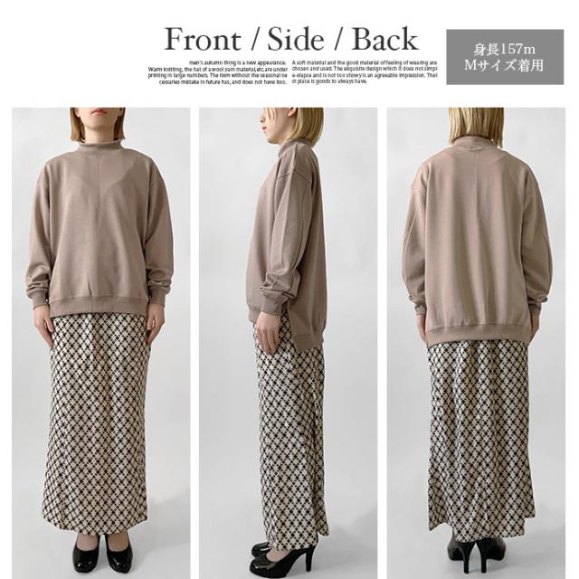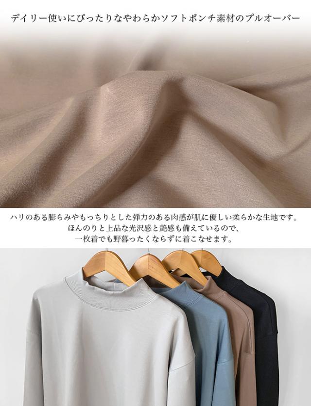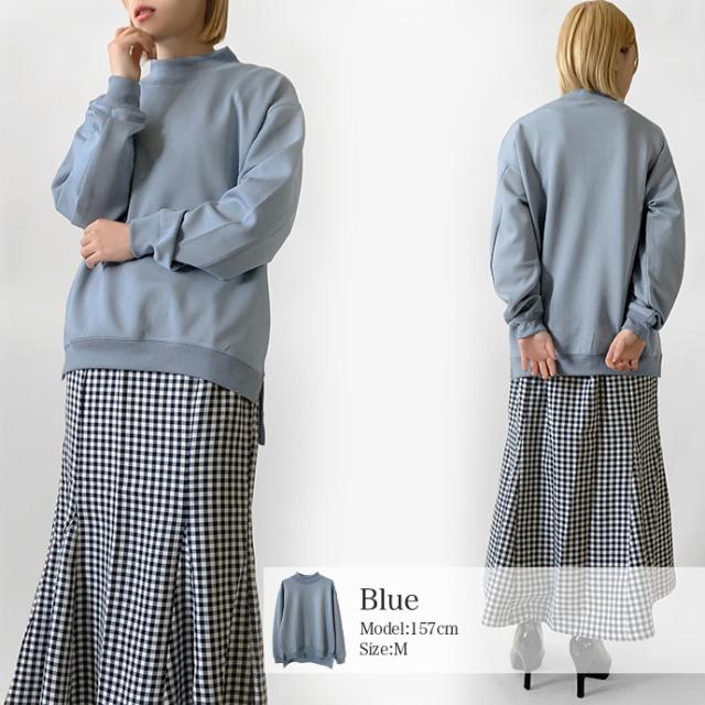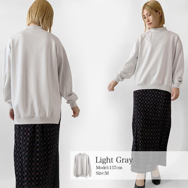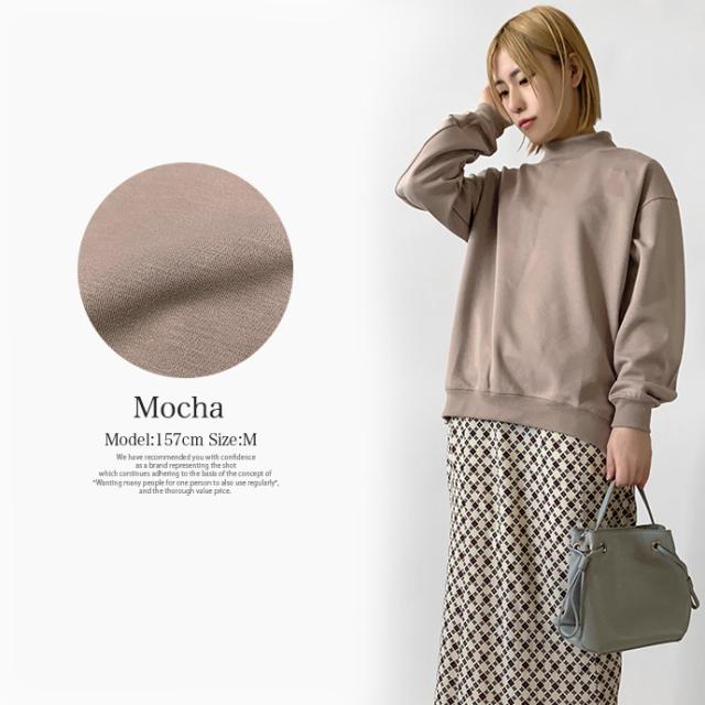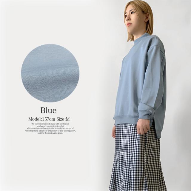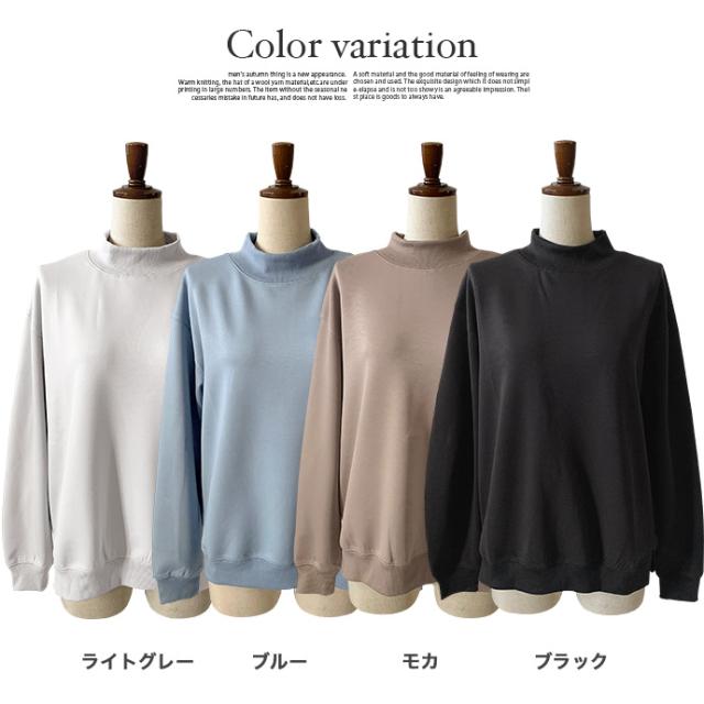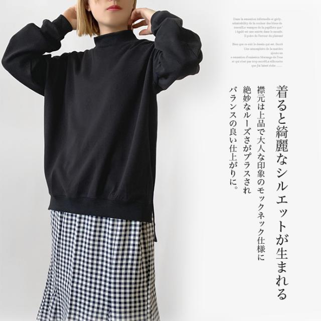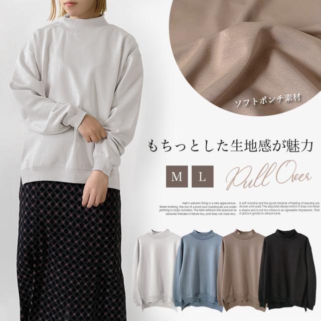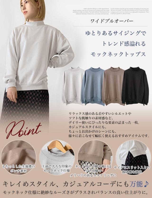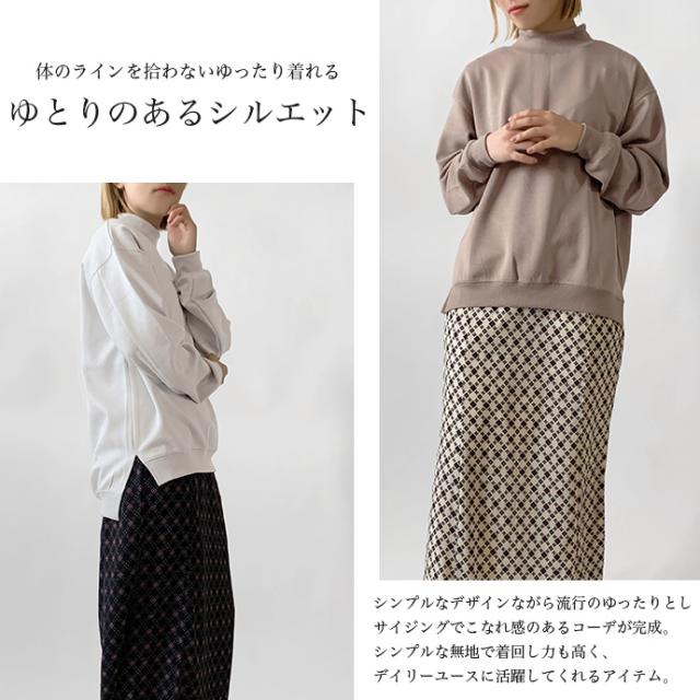 スウェット トレーナー トップス プルオーバー ソフトポンチ ワイド ゆったり モックネック オフタートル スリット 無地 長袖 なめらか もっちり トップス レディース 送料無料 値下げ セール