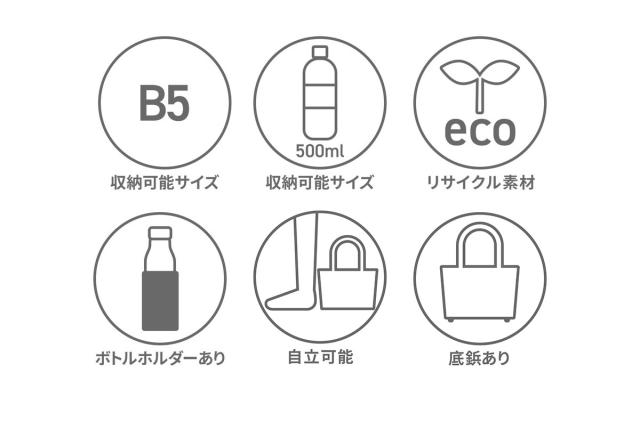 | 仕様 | <外側> ジップポケット(L)×1 └ 内蔵 ポケット(M)×1 マグネットポケット(L)×1 <内側> ジップポケット(L)×1 スナップポケット(L)×1 ポケット(S)×2 ボトルホルダー×1 |