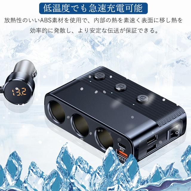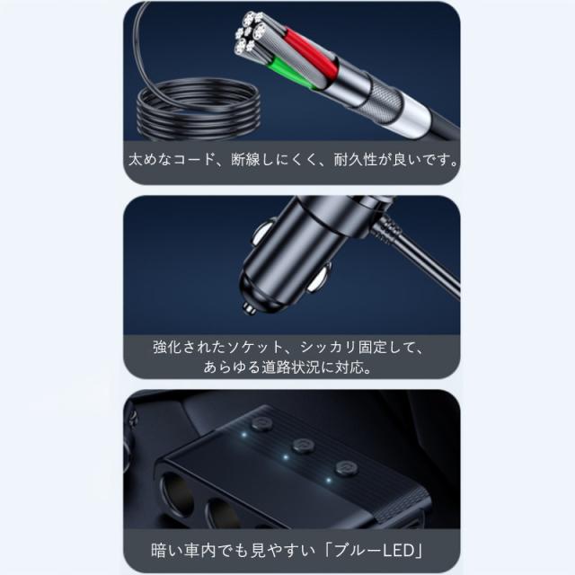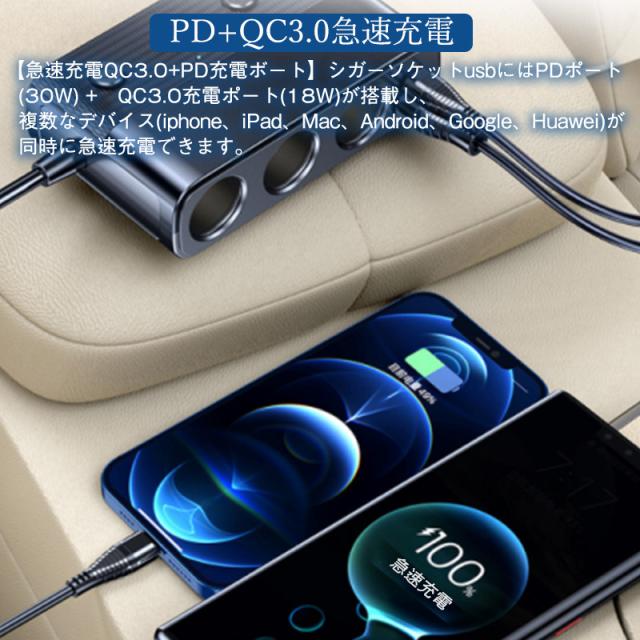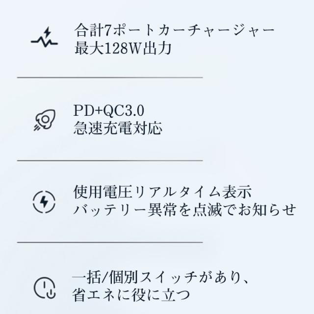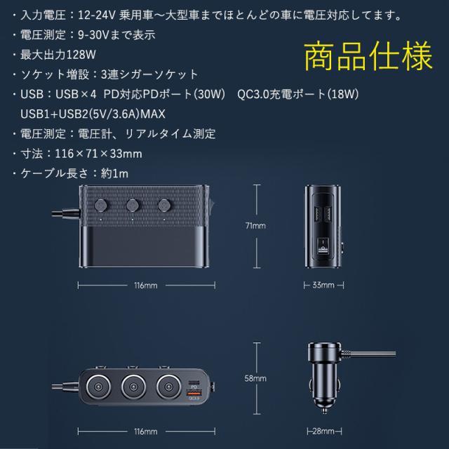 【即日発送】 シガーソケット 3連 増設ソケット分配器 128W QC3.0急速充電 usbポート カーチャージャー 電源ソケット 7in1 1