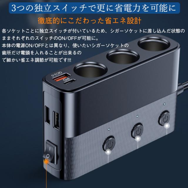車用 3連 USBポート シガーソケット 分配器 増設 USB 個別スイッチ スマホ タブレット 充電 3.1A DC12-24V対応 Quick charge 3.0 3連128W QC3.0急速充電 カーチャージャー 電源ソケット 分配器 7in1 通電ランプ付 LED