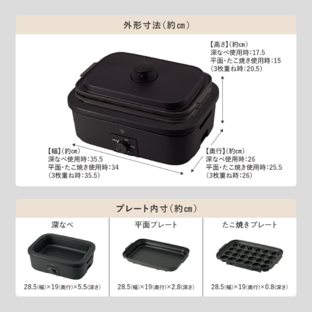 象印 デイリーコンパクトプレート EJ-DE30-BA ブラック 深なべ 平面プレート たこ焼きプレート付き 無水調理 おしゃれ ホットプレート ZOJIRUSHI