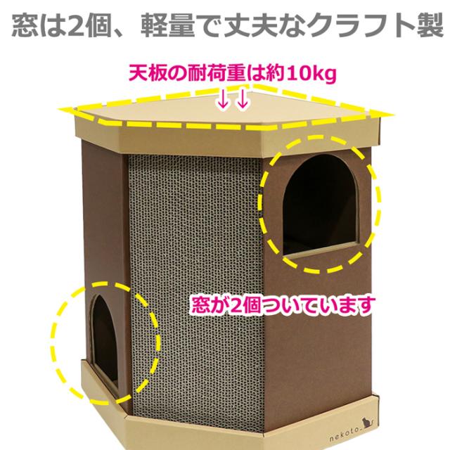 ネコハウス ペットハウス コーナースクラッチハウス CCSH-BR (R) 組立式 2階建て 猫ハウス かわいい 猫グッズ クラフト おうち