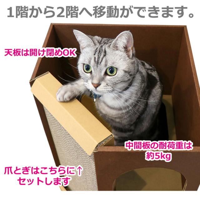 爪とぎがセットになった、2階建て猫ハウス(組立式)♪