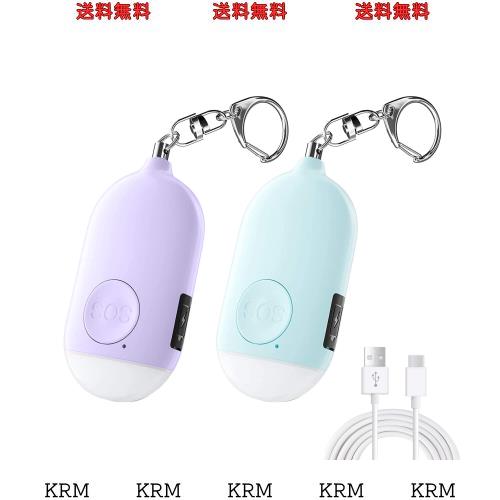 防犯ブザー【2個セット 紫+青】 LEDライト付き 防犯アラーム USB充電式 大音量130dB 防水 防犯 ブザー 小学生 女の子 男の子 女性 大人