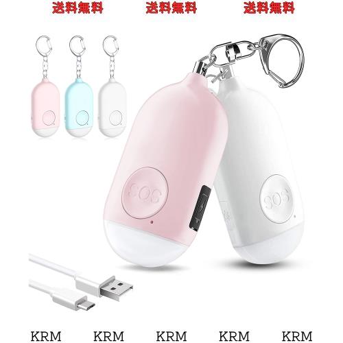防犯ブザー【2個セット ピンク+ホワイト】 LEDライト付き 防犯アラーム USB充電式 大音量130dB 防水 防犯 ブザー 小学生 女の子 男の子