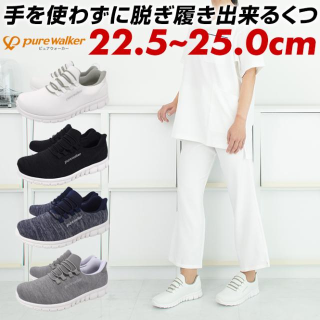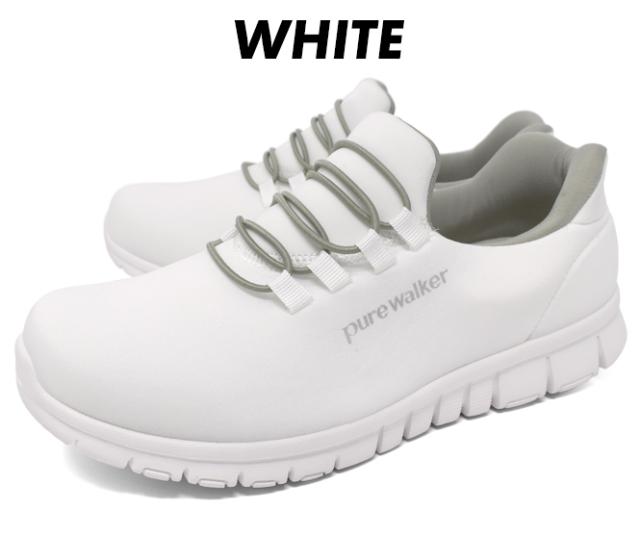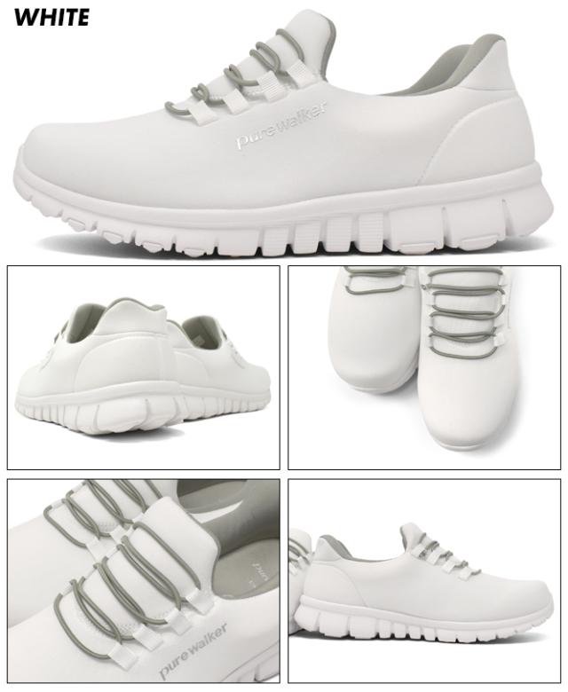 pure walker Slide Fit ナースシューズ スニーカー スリッポン 医師 看護師 介護 整骨院 保育士 白 黒 紺色 灰色 レディース ピュアウォーカー スライドフィット 幅広 革靴 履きやすい 歩きやすい 疲れない 痛くない 厚底 ポイント消化