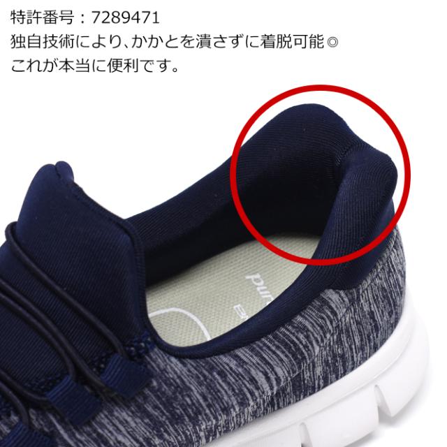 踏み込んでもカカトが潰れない!特許取得の画期的アイデアを搭載した新時代のスニーカーです。