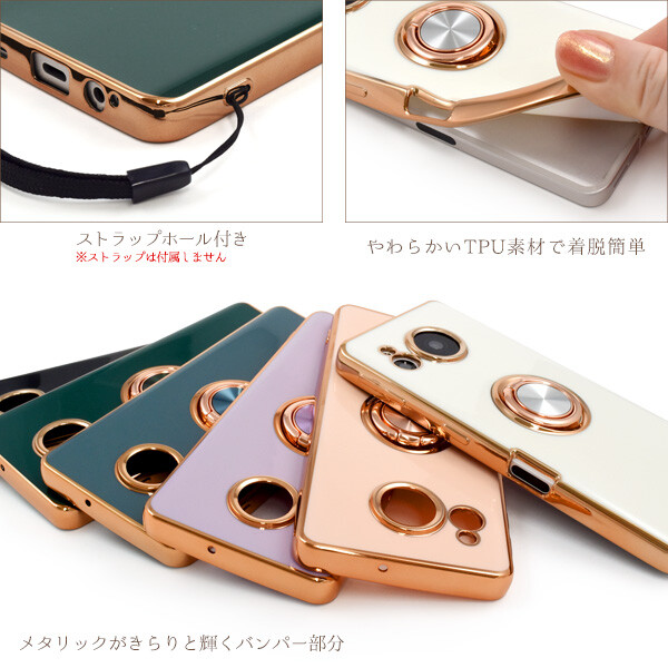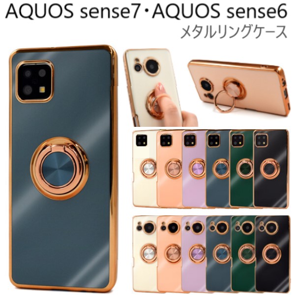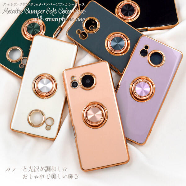 【AQUOS sense7・AQUOS sense6・AQUOS sense6s 用スマホリング付メタリックバンパーソフトカラーケース】