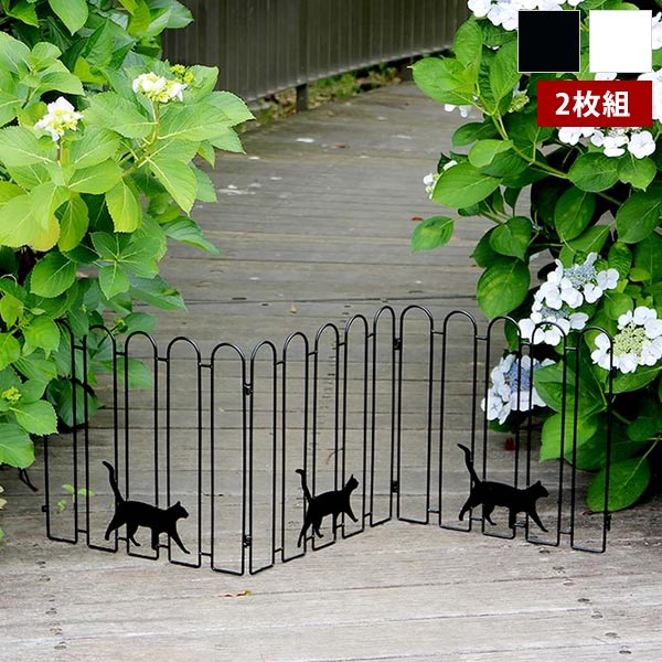 お気に入りのお庭には可愛いフェンスを!置くだけで空間をおしゃれに仕切れる、猫ちゃんデザインのアイアンフェンス。ガーデニング、ガレージ、玄関アプローチ、お庭の間仕切り等に大活躍!折り畳み式なので、使わない時は隙間にシュッと収納できます。サッと広げてサッと畳める三連フェンスはカーポートや車庫、青空駐車場にピッタリです。連結も簡単ではめこむだけでOK。カラーは定番のブラックと気品のあるホワイトの2色からお選びいただけます。