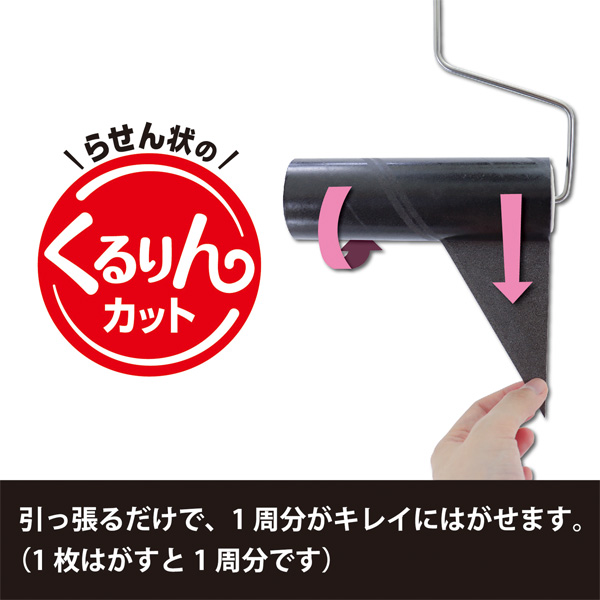 くるりんカットでめくりやすい!らせん状のくるりんカットを採用し、引っ張るだけで1周分がきれいにはがせます。