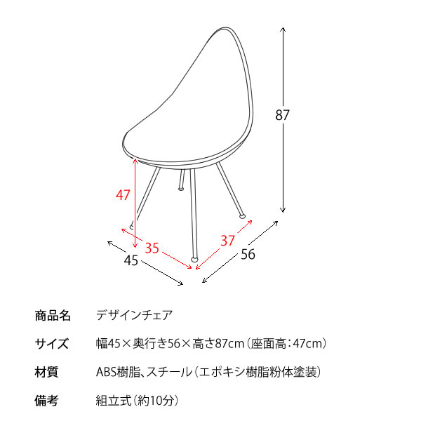 | サイズ | 幅45×奥行き56×高さ87cm(座面高:47cm) |