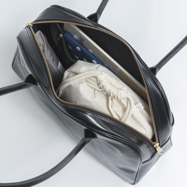 たっぷりとマチがあるので収納力も抜群です。折り畳み傘、本、お弁当や書類を入れて通勤にはもちろん、一泊二日の旅行にも活躍します。手提げとしても、肩掛けとしても、どちらもしっかりきまります。