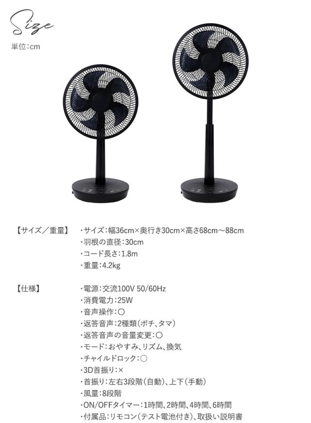 特徴:・手が離せない時でも“声”で操作できる扇風機
