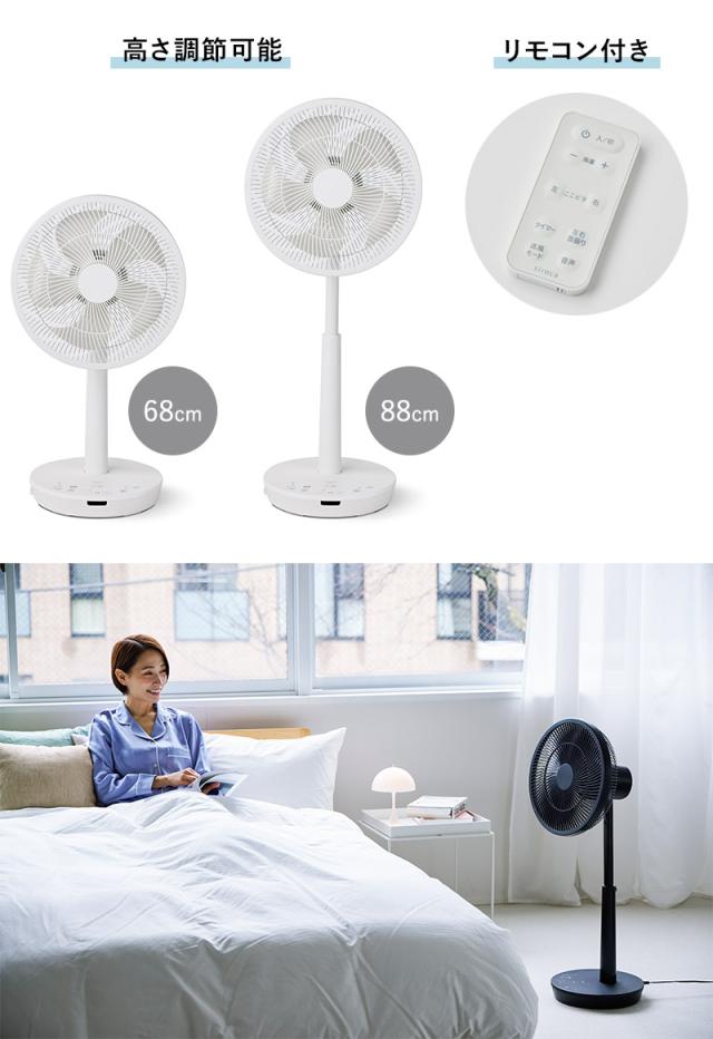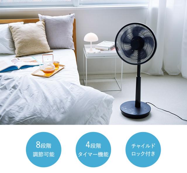 LED減光やボタン音の消音、風量自動調整が可能なおやすみモードで心地よい眠りを提供します。高さは68cm〜88cmの間で細かく調節することができるので、お布団やベッドなど様々なライフスタイルに寄り添います。