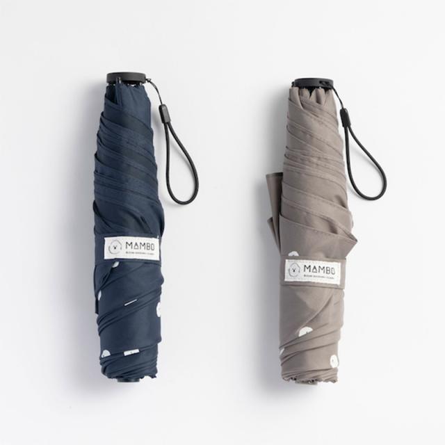 イラストレーター 塩川いづみさんの描いた「ビション・フリーゼ」がモチーフの、人気のMAMBOシリーズにドット柄の折り畳み傘が登場。傘の表面にはよく見ると、さまざまな表情のMAMBOの顔が水玉模様に。雨の日が楽しくなるような愛らしさです。