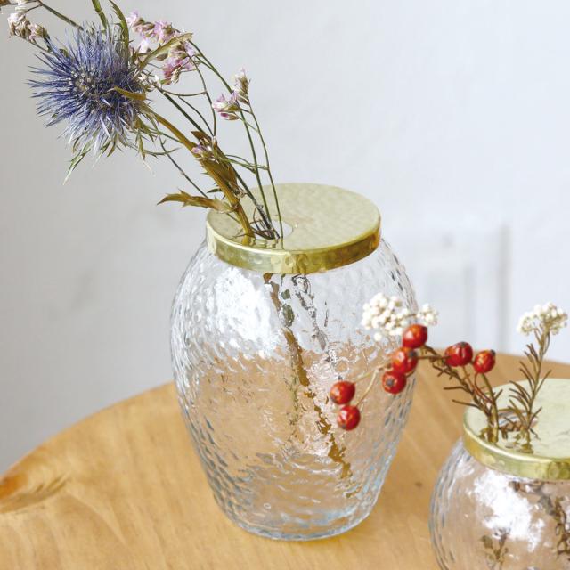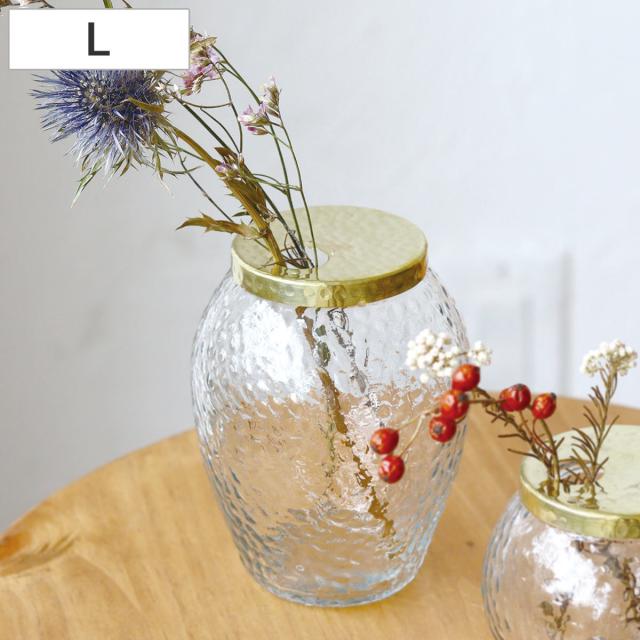 花瓶 インブルーム キャニスターリサイクルガラスベース L フラワーベース ( 花びん 花器 ベース フラワー 花 飾る 卓上 キャニスター リサイクルガラスベース ガラス アルミ ブラス 真鍮 ゴールド ハンドメイド 小物入れ )