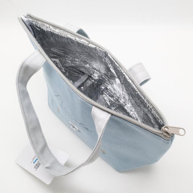 バッグの内側はアルミ素材になっているので保冷効果があります。保冷剤を一緒にお使いいただくと効果が長持ちします。