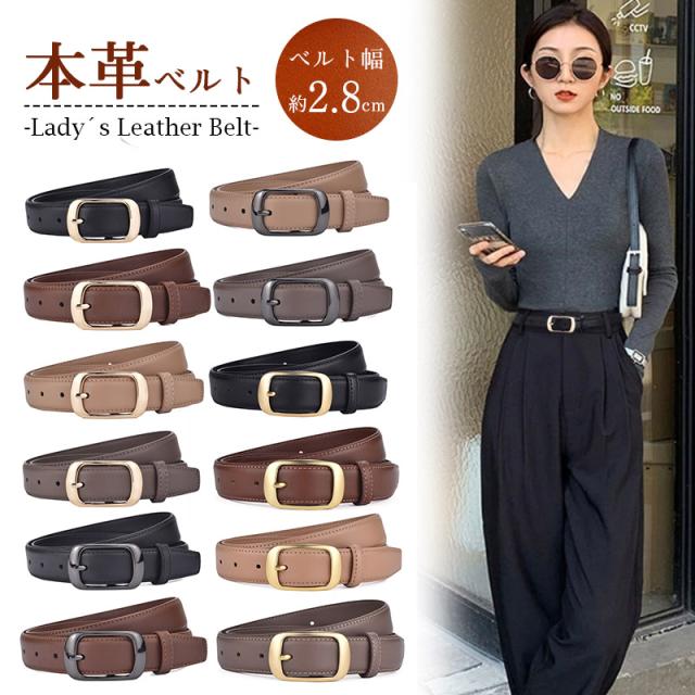 ベルト レディース 本革 牛革 細ベルト 太めベルトスリムベルト 調節 通勤 通学 カジュアル コーデ ファッション シンプル かわいい おしゃれ