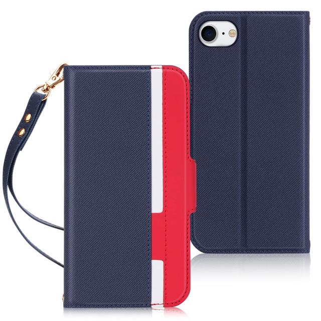 FYY iPhone SE ケース 第3世代 2022 iPhone SE ケース 第2世代 iPhone8 ケース iPhone7ケース スマホケース PUレザー 手帳型 軽量 薄型 ワイヤレス充電対応 カード収納 スタンド機能 ストラップ付き ハンドメイド 耐衝撃 iPhone SE 第3世代(2022)/ iPhone SE 第2世代(2020)/ iPhone8 / iPhone7 対応 (レッド×ネイビー)