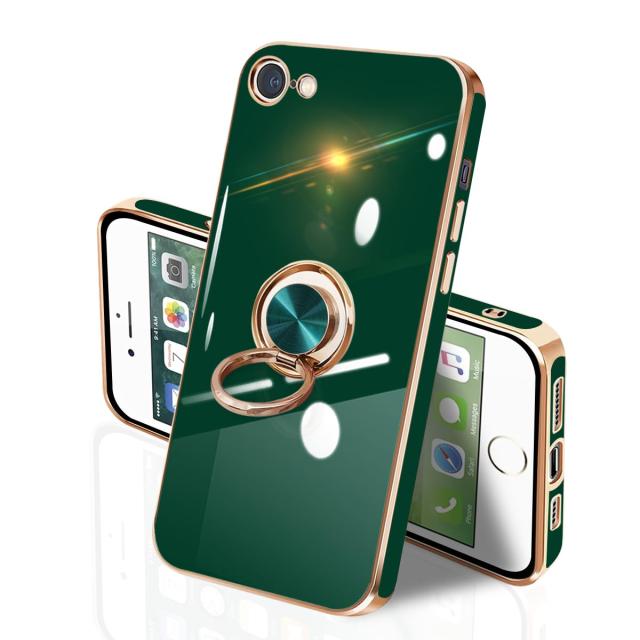 iPhone SE2 iPhone SE3 iPhone7 iPhone8 ケース リング付き イフォンSE3 リング TPU カバー 全面保護 耐衝撃 スマホケース 360°回転 スタンド機能 携帯カバー 車載ホルダー対応 ストラップホール付き メッキ加工 擦り傷防止 4.7インチ(ダークグリーン)
