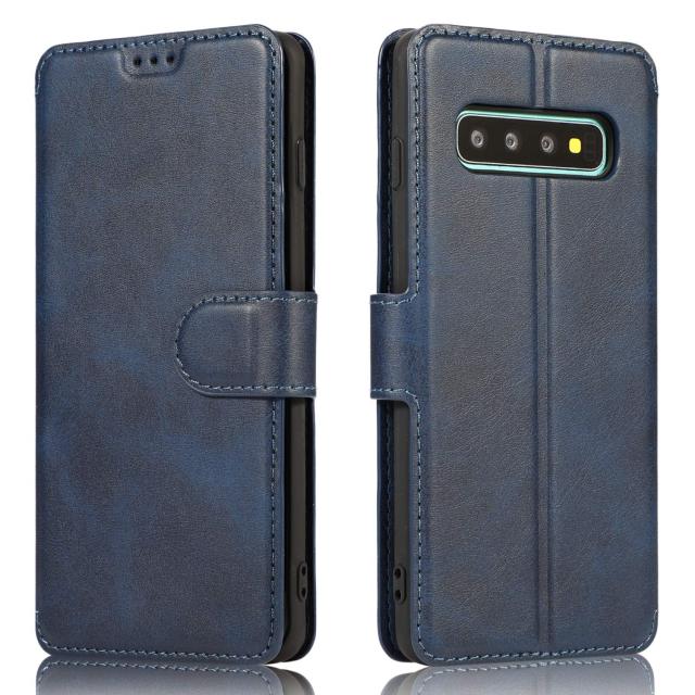 QLTYPRI Samsung Galaxy S10e ケース 手帳型 本革レザー カード収納 横置き Qi充電対応 耐衝撃 全面保護 シンプル 人気 おしゃれ 財布型 カバー - ブルー