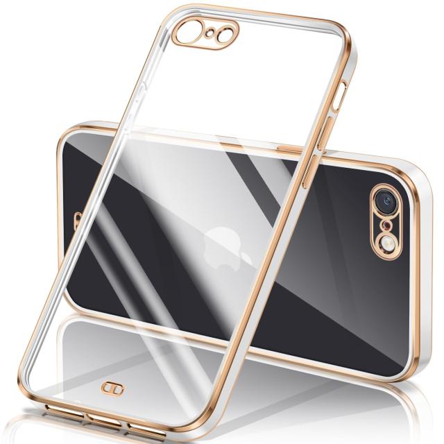 iPhone SE3 ケース 第3世代 iPhone SE2 ケース 第2世代 クリア 透明 耐衝撃 iPhone7 ケース iPhone8 ケース メッキ加工 薄型 軽量 ストラップホール付き 落下防止指紋防止 レンズ保護 ワイヤレス充電 アイフォンSE 2/SE 3 カバー(ホワイト)