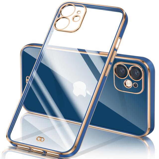 iPhone12 mini ケース クリア 透明 アイフォン12mini カバー メッキ加工 耐衝撃 TPU ソフト 薄型 軽量 ストラップホール付き 落下防止 ワイヤレス充電(ブルー)