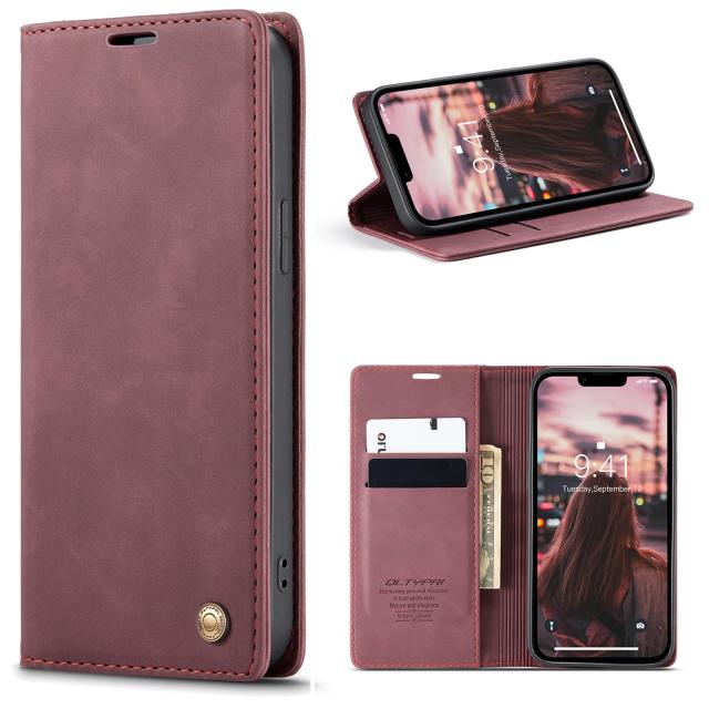 QLTYPRI iPhone 15 ケース 手帳型 PU 高級レザー アイフォン15 ケース財布型 マグネット カード収納 全面保護 薄型 耐衝撃 スタンド機能付き 人気 ケース iPhone 15対応 6.1インチ - ワインレッド