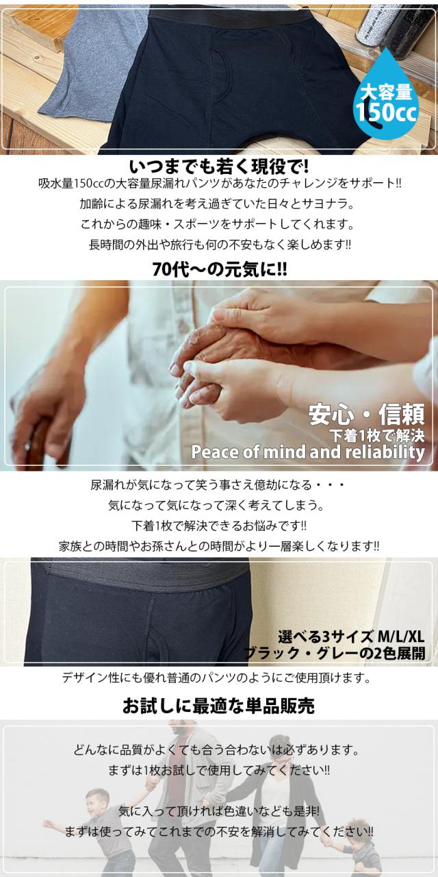 ブラック グレー 黒 灰 失禁用品 ゆったり 尿染み 介護用品 高齢者 福祉用品 頻尿 残尿感 介護下着 メンズパンツ 肌着 敬老の日 父の日 プレゼント ギフト 贈り物 誕生日入院 旅行