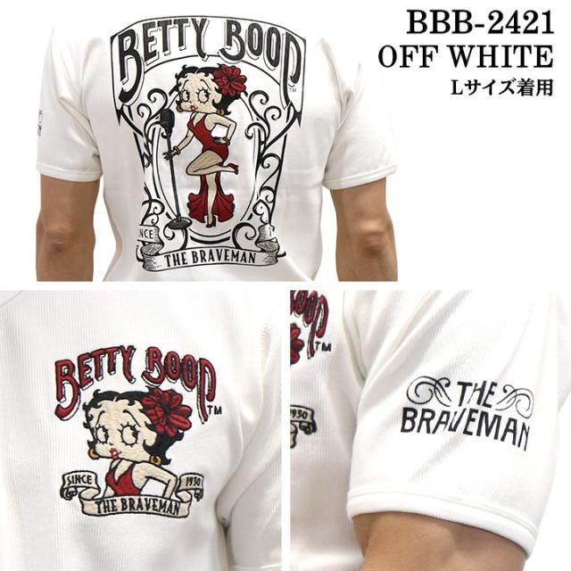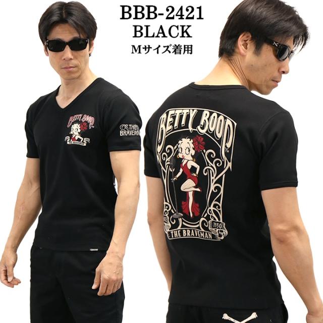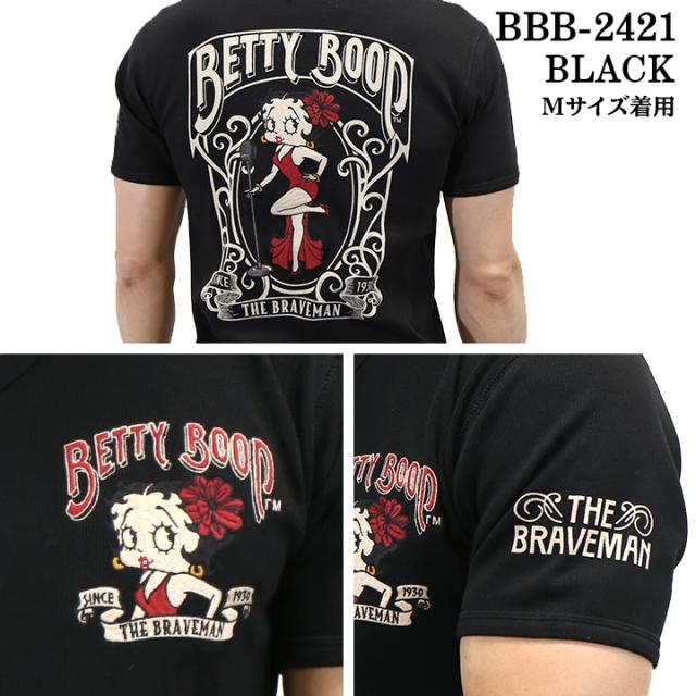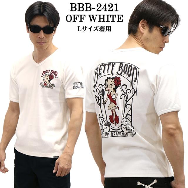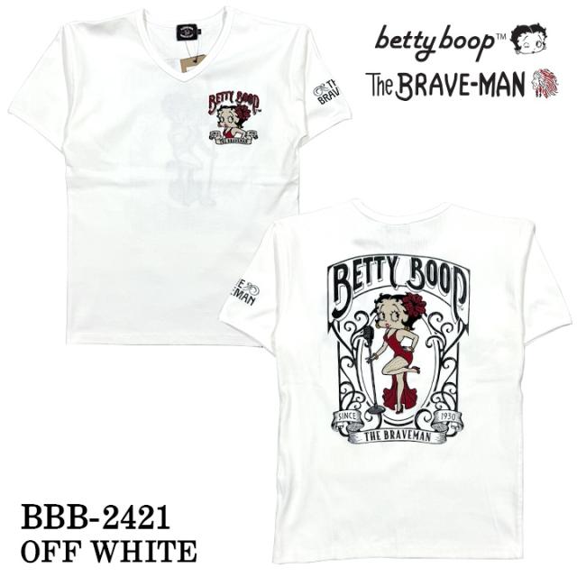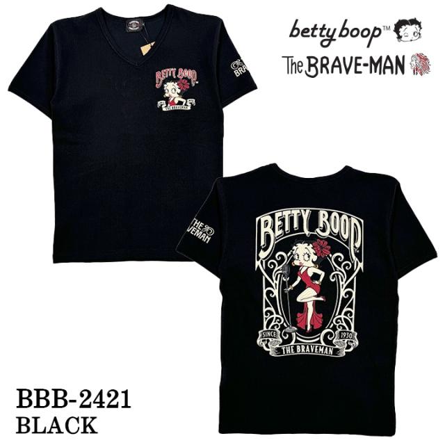 THE BRAVEMAN×BETTY BOOP ブレイブマン ベティーブープ コラボ テレコ Vネック 半袖Tシャツ bbb-2421