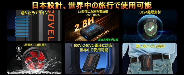 ※COVELL製品のバッテリーとフアンを必ずお使いください。他社製品と組み合わせて使用した場合の故障や事故に関して?任を負いません。