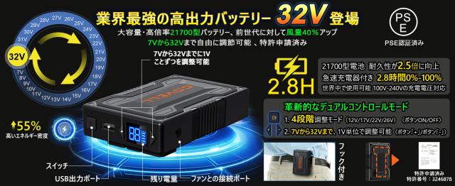 セット内容:・空調作業服x1/32Vファンx2/ファンとバッテリーを接続するケーブルx1 32V対応の高出力バッテリーx1/急速充電ACアダプターx1/日本語取扱説明書x1