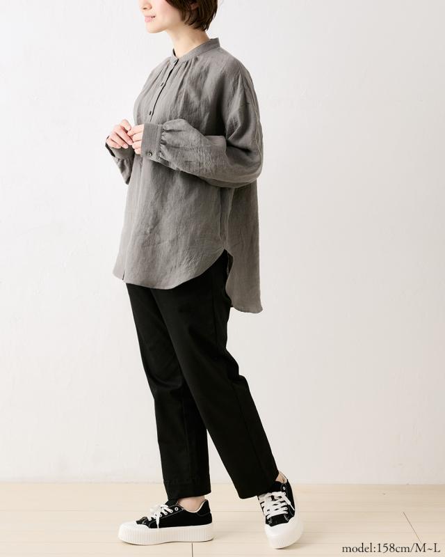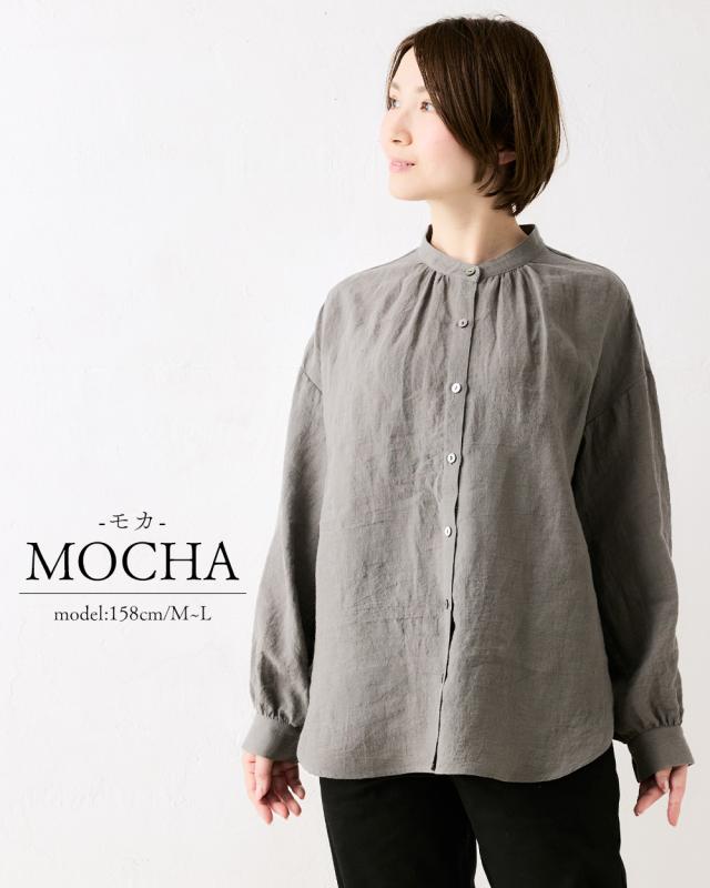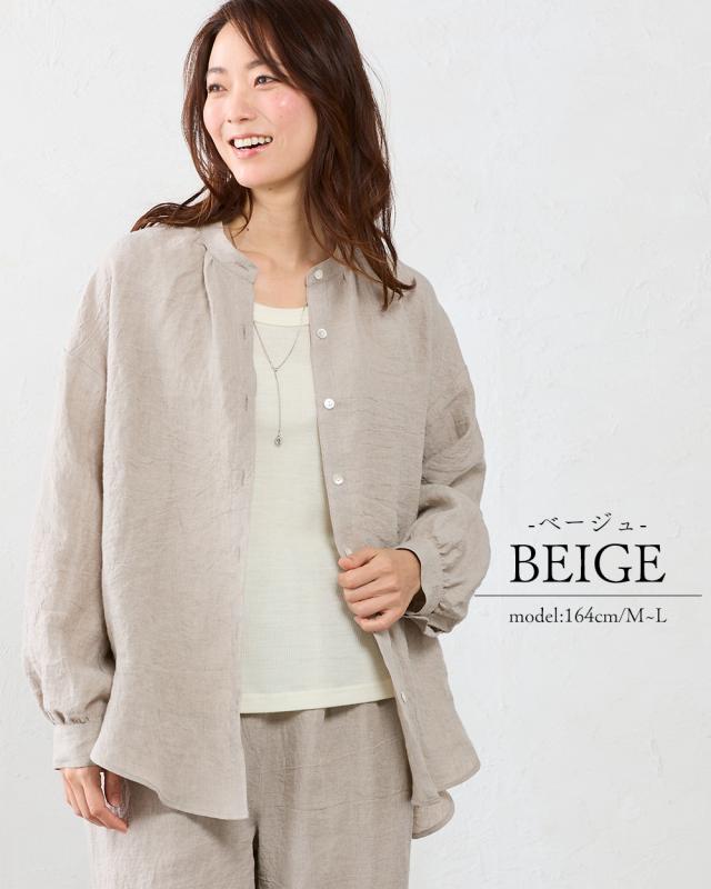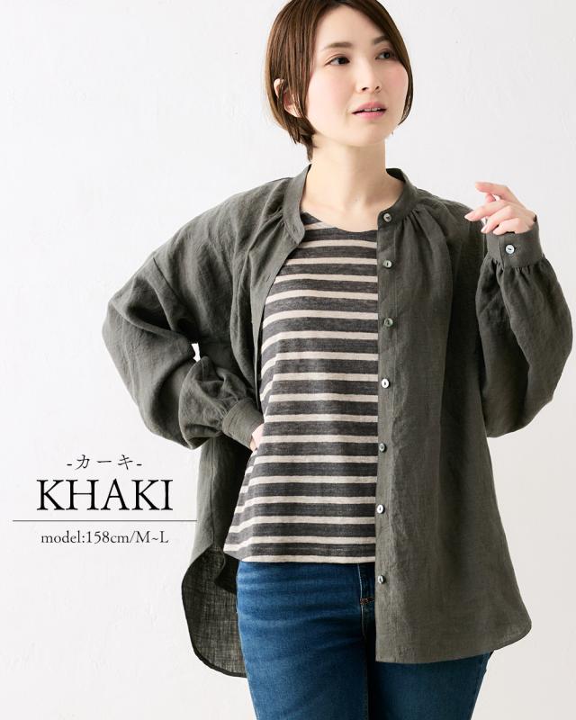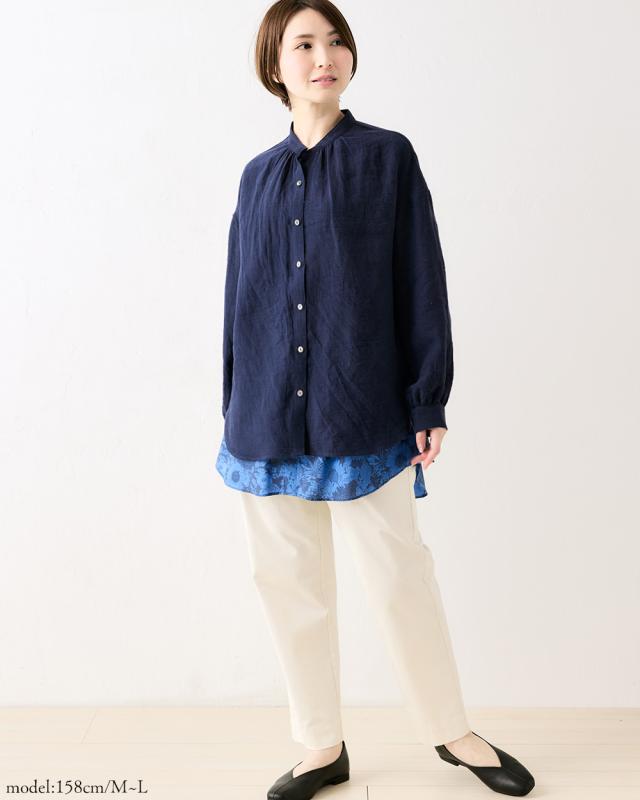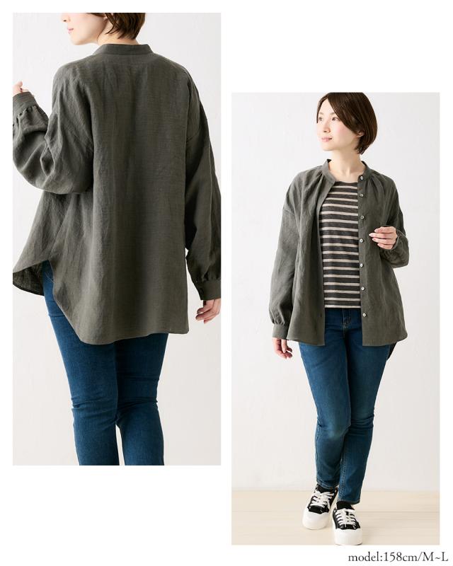 匠の技 東炊き シャツ 日本製 麻 ブラウス 麻100% M〜L スタンドカラー 洗い生地 リネン 羽織 長袖 ファッション レディース 女性 春 夏 冬 秋 トップス カジュアル 30代 40代 50代 フリーサイズ マオカラー