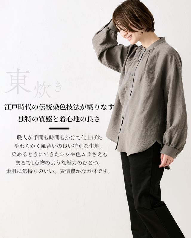スカイツリーのお膝元、東京の染工場から独特の凹凸感が魅力の東炊き(あずまだき)生地ブラウス。
